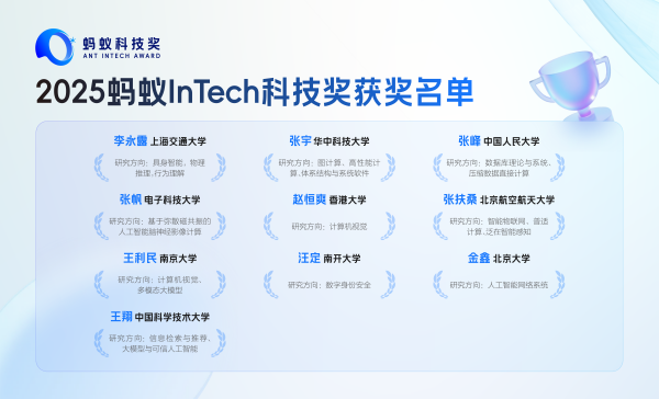 “科技驱动是公司立身之本,青年科研人才是创新的关键引擎。”蚂蚁集团首席技术官何征宇在颁奖时表示,Intech奖自2024年设立,采用院士及权威专家的提名评审制,旨在发掘并支持计算机与交叉学科领域的中国青年科研力量,今年首次增设面向中国籍在读博士生的“Intech奖学金”。本届整体参评规模达去年3倍,海外申报者占比超20%,候选人来自牛津、耶鲁、斯坦福及清华、北大、港大等,海内外关注度显著提升。