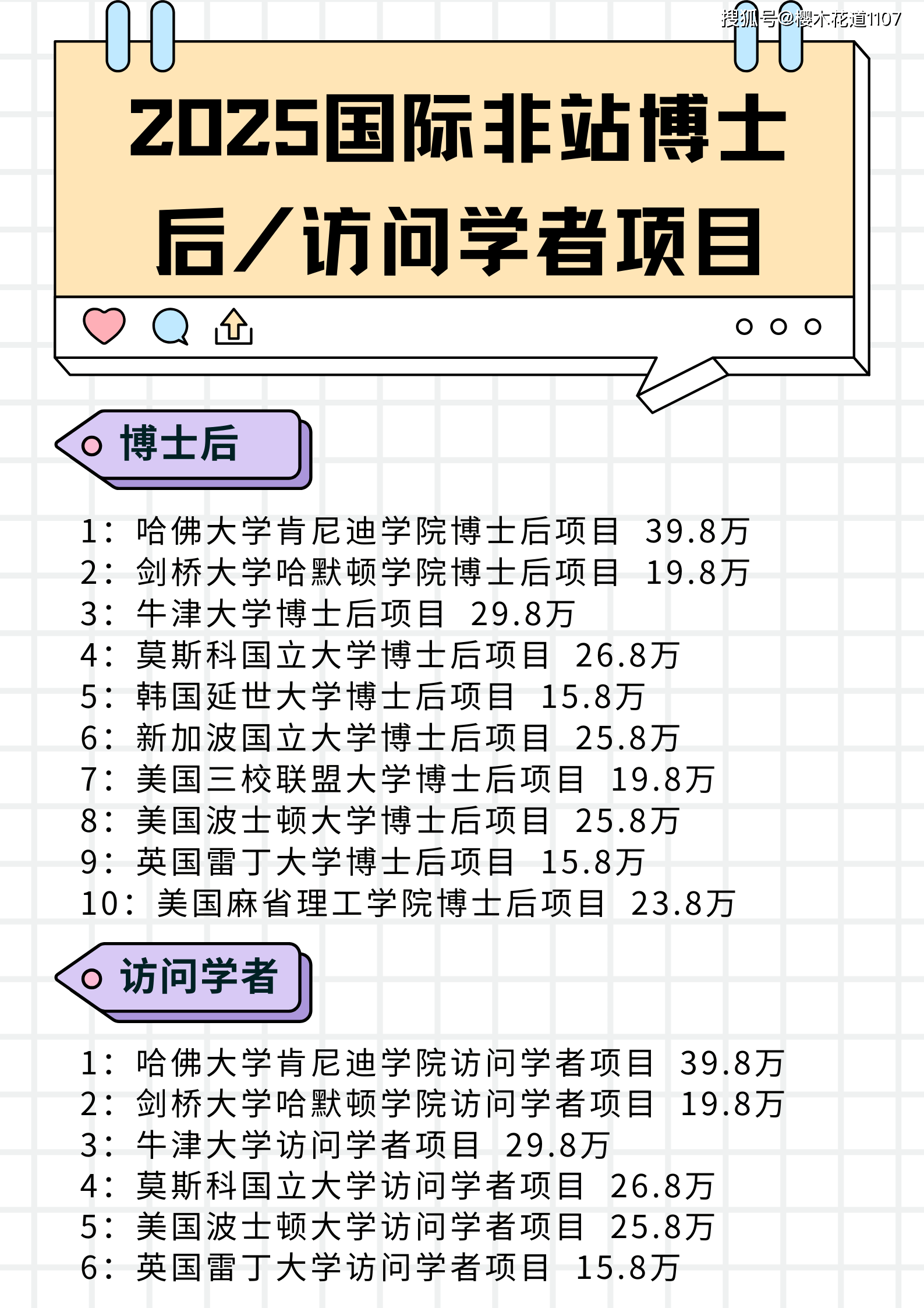哈佛大学:哈佛大学拥有世界一流的科研设施和丰富的学术资源,包括先进的实验室、图书馆、研究中心等。这些资源为博士后研究人员提供了强有力的科研支持。此外,哈佛大学还积极与全球各地的知名高校和研究机构建立合作关系,推动跨学科、跨国界的科研合作与交流。