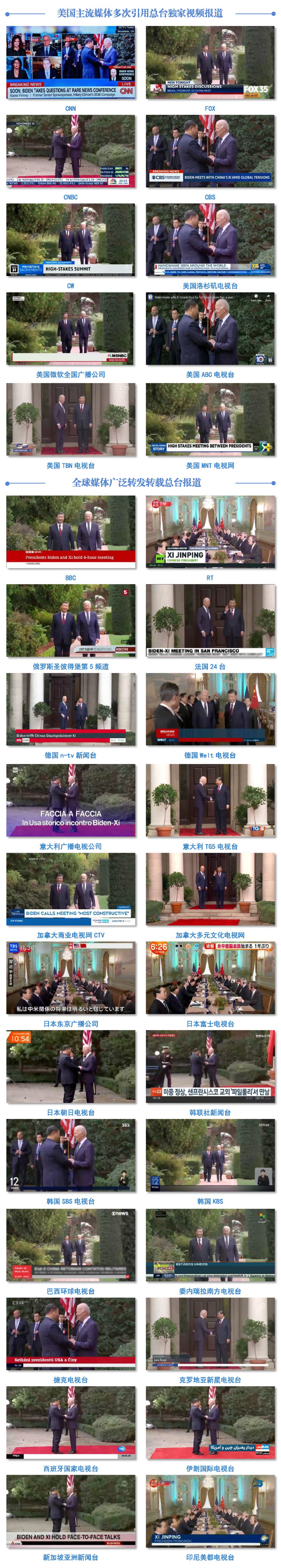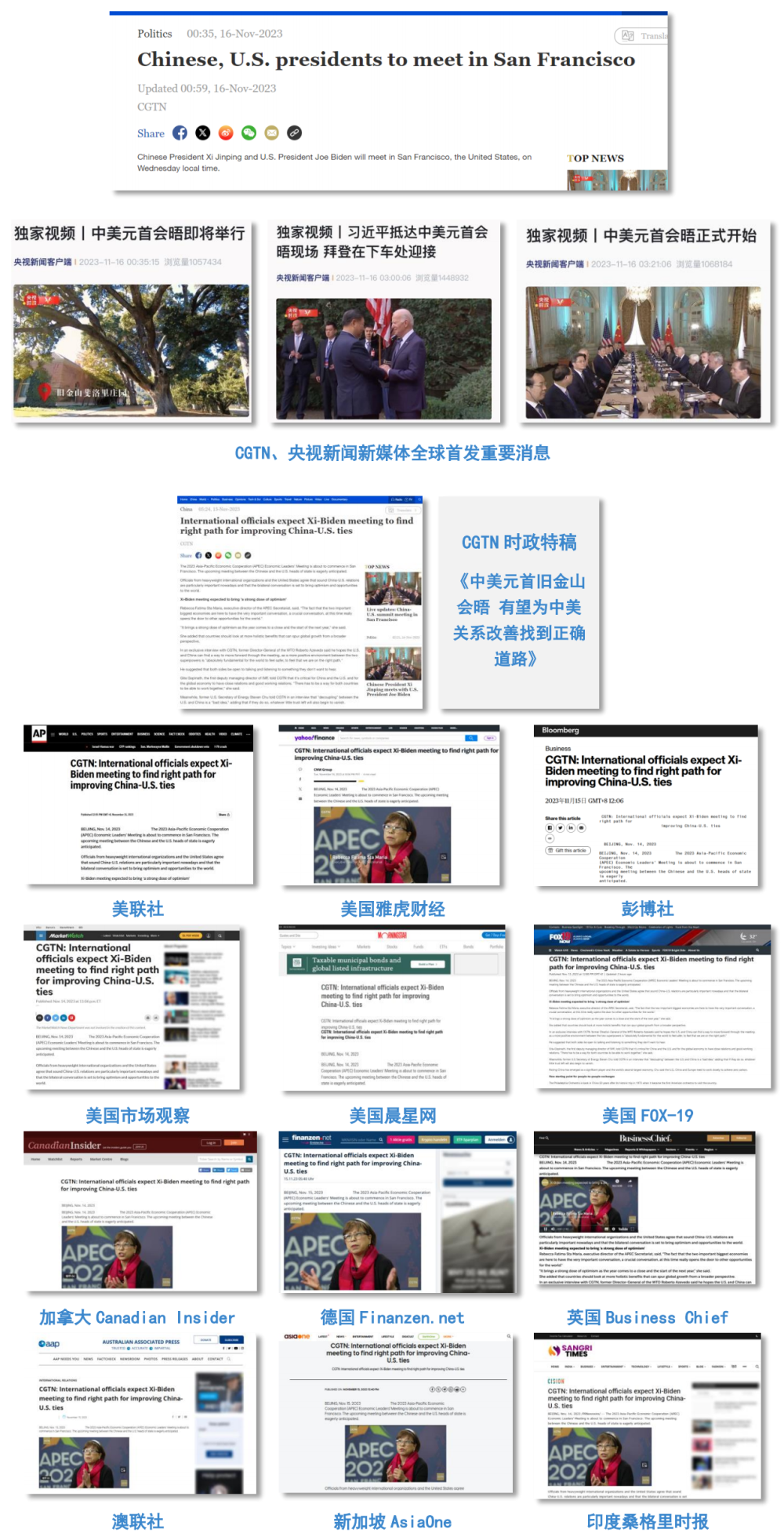 有力发声。总台多语种主持人、记者应邀与ABC、美国Scripps News电视台、美国自由电视台、BBC、俄罗斯卫星通讯社、沙特新闻电视台、法国蒙特卡洛电台、南非第五频道、摩洛哥Medi1 TV电视台、越南数字电视台、印度电讯电视台、泰国公共电视台、土耳其FIL电视台、巴基斯坦国家电视台、巴基斯坦A1电视台、肯尼亚PPP电视台、刚果(金)Mishapi电视台、孟加拉国RTV电视台等海外主流媒体连线余次。在欧洲时事杂志《现代外交》、印尼发行量最大的英文报纸《雅加达邮报》、埃及时政报纸《宪法报》、巴基斯坦主流媒体《每日邮报》、土耳其主流数字媒体《哈里吉》、阿尔及利亚《祖国报》、伊拉克阿杰纳丁通讯社、摩洛哥《回声报》等海外主流媒体发表文章超100篇次,第一时间传递中美元首会晤重要共识,面向对象国受众鲜明宣介习主席关于中美关系的重要论述。